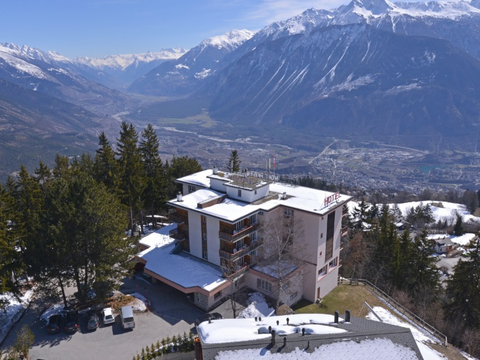 Crans-Montana, Valais Suisse. Une des plus belles vues panoramique des Alpes valaisannes. Dominant la vallée et faisant face à la station de Grimentz, vous serez émerveillés par la vue plein Sud sans vis-à-vis qui garantie un ensoleillement maximum. Cet établissement se trouve sur une parcelle cadastrale de 16419 m2 constructible. Le PLU local permet un agrandissement de l'hôtel existant mais aussi la construction d'une résidence hôtelière. Actuellement l'hôtel possède 40 chambres mais possibilité d'en doubler le nombre.