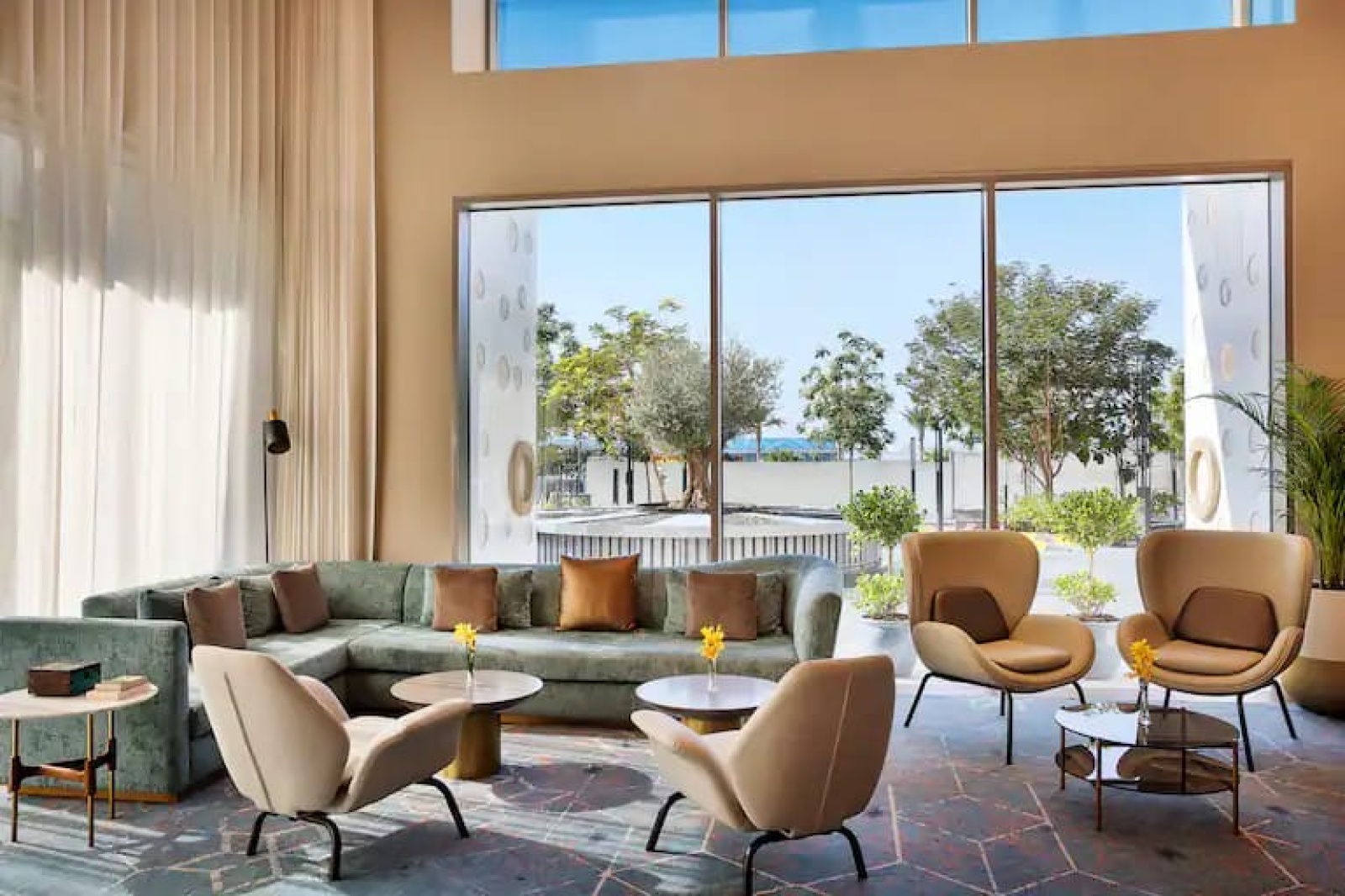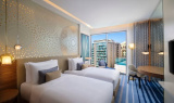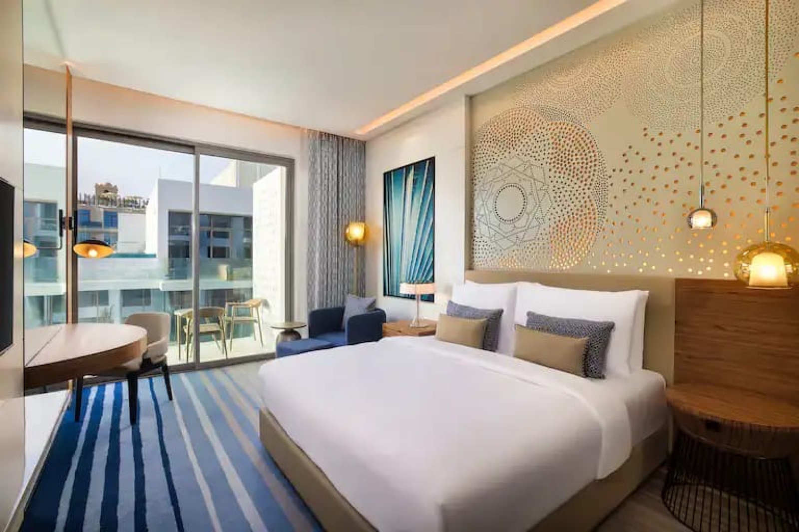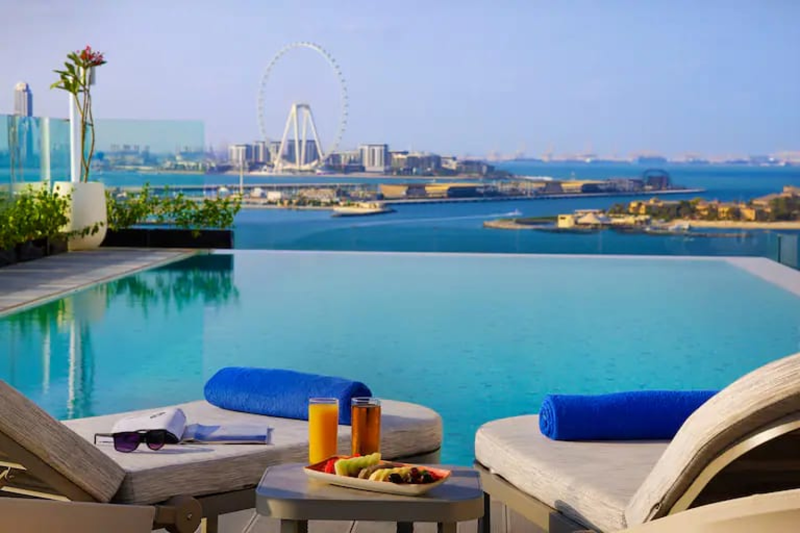 Magnifique hôtel 4étoiles 2+ de 180 chambres et suites dans le célèbre quartier de Palm Jumeirah au bord du golf Persique. Superbe hôtel aux quadruples expositions bénéficie de tout le confort et le luxe souhaité. Vous y trouverez, 2 Spas, 2 piscines dont une sur le toit de l'établissement, plusieurs cafés et restaurants ouverts toute la journée (All day dinning). Bar de plage, boutiques de luxe, 4 ascenceurs, 50 places de parking dans les sous-sols et des tailles de chambres minimum de 34 m2. L'hôtel se trouve à 17 km de Dubaï ski resort et à 47 km de l'aéroport international.